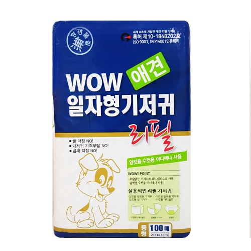 [와우한빛] 애견 일자형 기저귀 리필 - 중형 100매